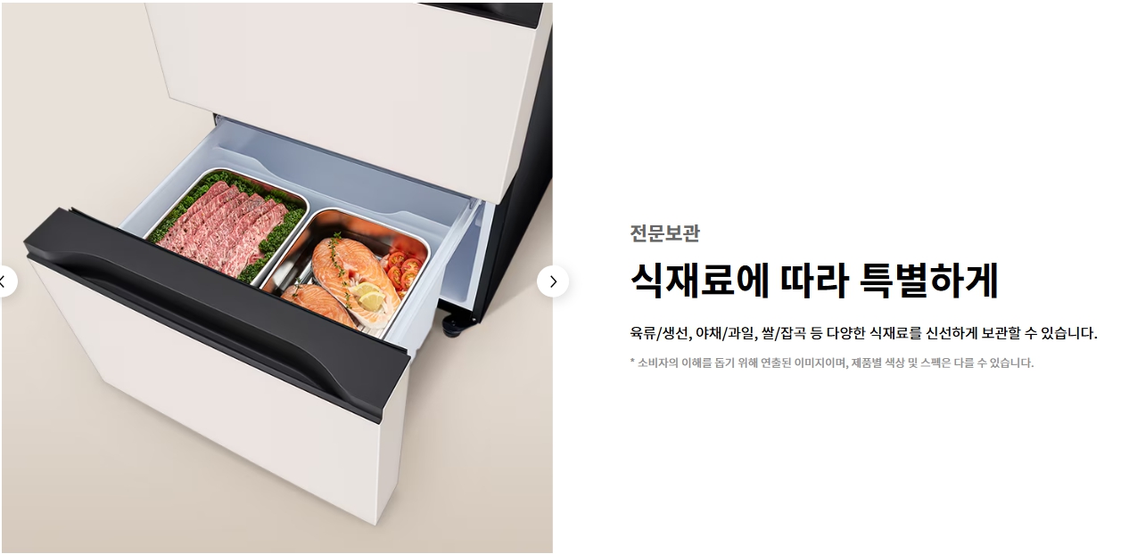 - 다용도로 활용하려면 400리터대가 편리합니다. 빌트인 냉장고 옆에 300리터 김치냉장고를 딱 붙여서 사용하고 싶다면 일반 오브제 라인으로 높이를 꼭 확인하고 구매하세요.