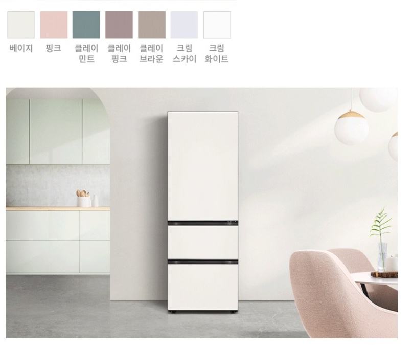 - 3도어형 300리터대가 딱 좋습니다. 빌트인 냉장고 옆에 두면 공간 활용도도 높고요. 디자인도 예뻐요. 도어 전체가 메탈 소재라 고급스럽고, 베이지, 크림 그레이, 크림 화이트 색상이 있어서 어떤 주방에도 잘 어울립니다. 다만, 추후에 패널 색상 교체는 불가능하다는 점 참고해주세요.